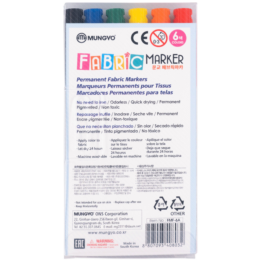 MUNGYO textilmarker készlet - Klasszikus színek - 6 db