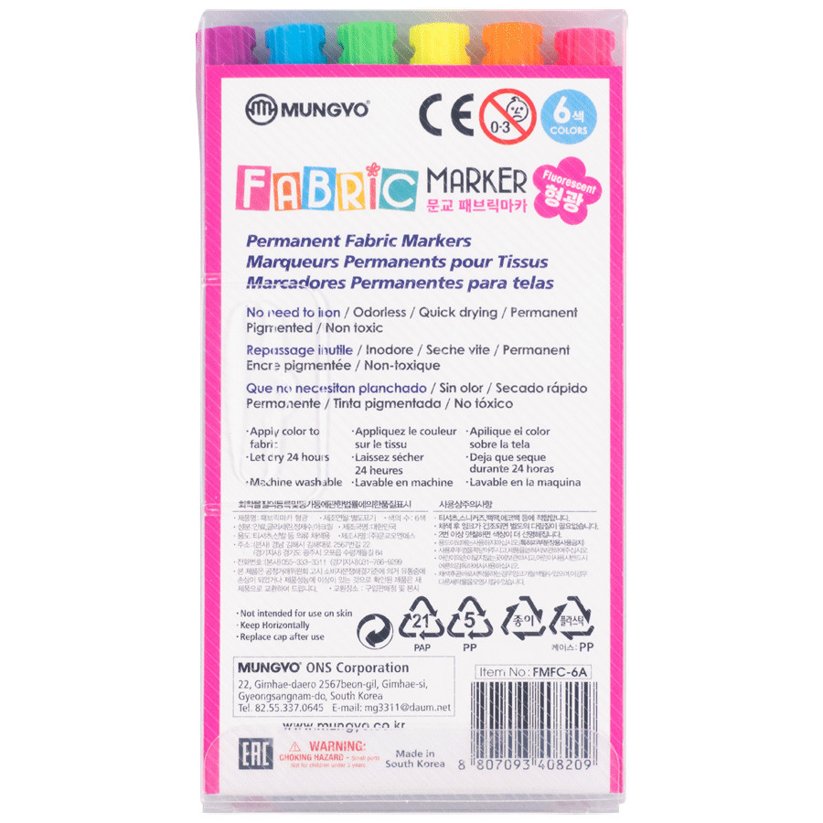 MUNGYO textilmarker készlet - Fluoreszkáló színek - 6 db
