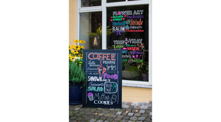 A krétamarkerek mindenféle projekthez kiválóak - különösen hatékonyak az üvegen. Természetesen papírra, kartonra, fára és tábla felületekre is használhatjuk őket, ha hagyományos színes markerként szeretnénk alkalmazni őket. De az folyékony krétájával kapcsolatban az a csodálatos, hogy kültéren és beltéren egyaránt alkalmazható, mivel esőálló.