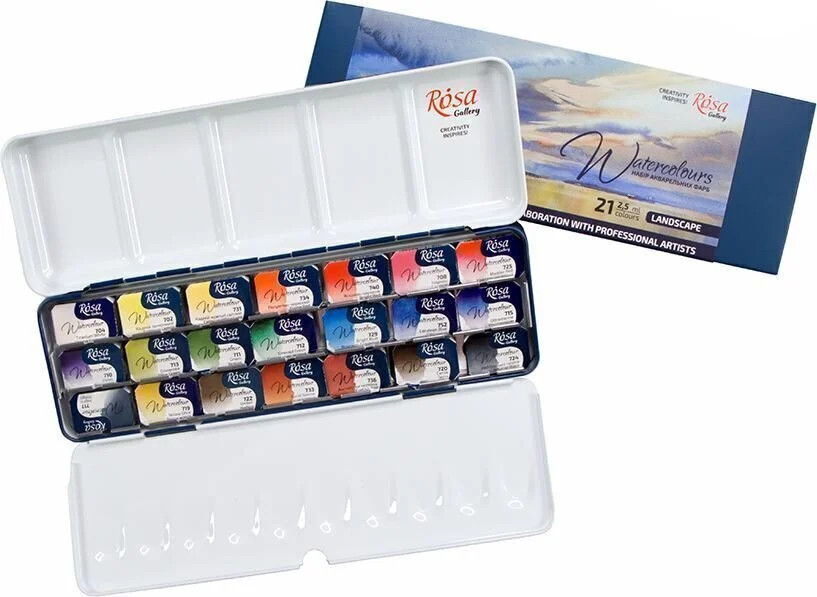 Akvarellfesték készlet, szilkés - Rósa Gallery Landscape Indigó - 21 x 2,5 ml - fémdobozos